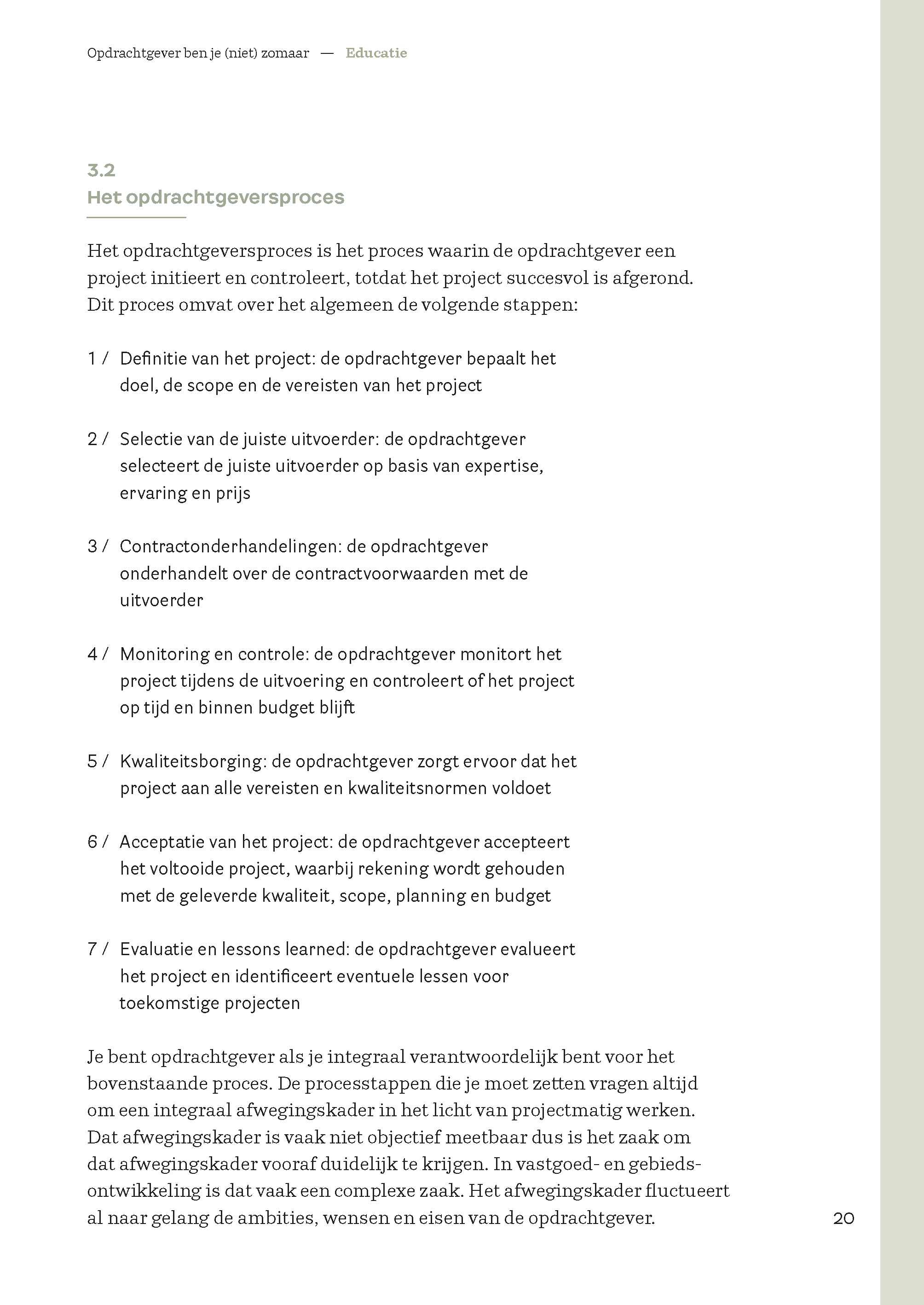 Het boek dient als gids én inspiratiebron voor iedereen die bewust zijn rol als opdrachtgever in vastgoed- en gebiedsontwikkeling wil vervullen. Theorie en praktijk wisselen elkaar af, waardoor het zowel informatief als direct toepasbaar is in de dagelijkse praktijk.